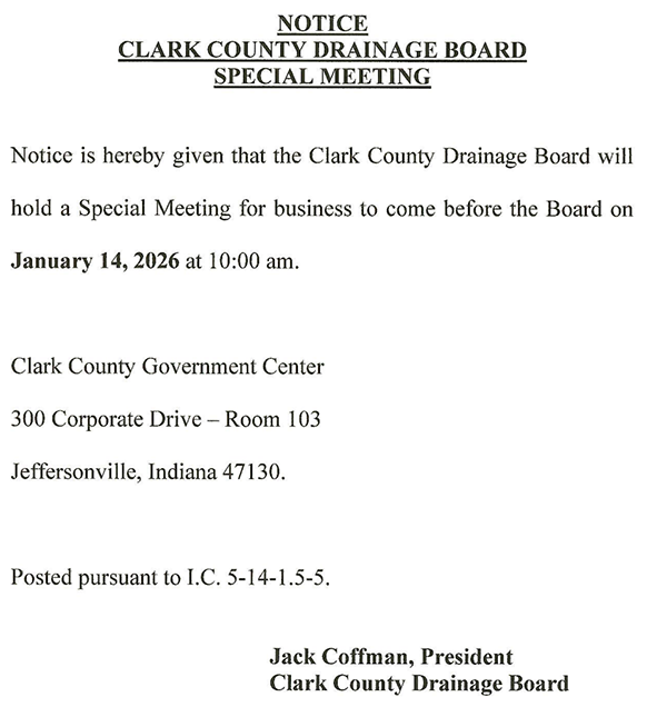 The Drainage Board is hereby authorized to perform those duties and functions specified under Indiana Code 36-9-27-4 and other applicable sections of Indiana Law and such other responsibilities as may be assigned to it from time to time by the Board of Commissioners of Clark County. It provides a 3 member board that consists of 1 county executive and 2 county residents and the county surveyor serves as an ex-officio non-voting member. The board reviews unincorporated county drainage plans, including subdivisions, and investigates unincorporated county drainage problems.